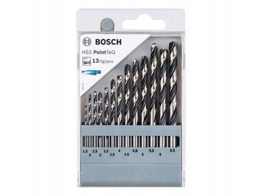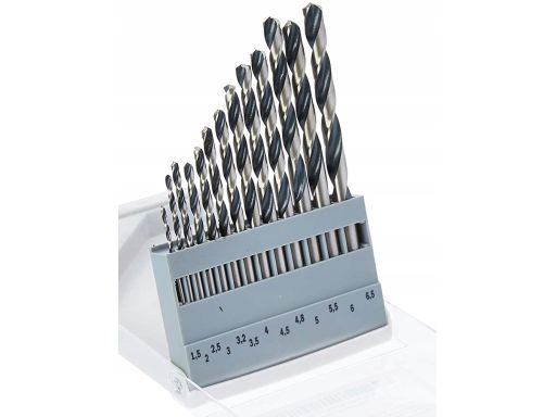 WIERTŁO KRĘTE, HSS, 13 SZT., ŚREDNICA WIERTŁA: 1,5, 2, 2,5, 3, 3,2, 3,5, 4, 4,5, 4,8, 5, 5,5, 6, 6,5MM, DŁUGOŚĆ ROBOCZA: 18, 24, 30, 33, 36, 39, 43, 47, 52, 57, 63MM, PRZEZNACZENIE (MATERIAŁ, CIECZ):
