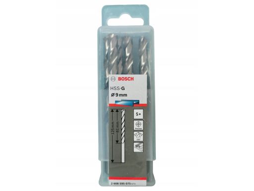 ZESTAW WIERTEŁ SPIRALNE / WALCOWA/E, HSS-G, 5 SZT., ŚREDNICA WIERTŁA: 9MM, DŁUGOŚĆ CAŁKOWITA: 125MM, DŁUGOŚĆ ROBOCZA: 81MM, PRZEZNACZENIE (MATERIAŁ, CIECZ): STAL / ŻELIWO