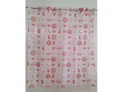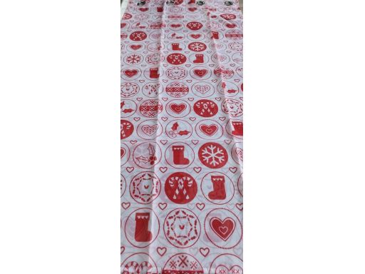 B.P.C firana biała w czerwone wzory świąteczne ^145x140cm/1*Firana z kolekcji B.P.C